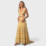 Tyto dlouhé letní šaty kombinují ležérní eleganci s odvážným designem. Díky stylovým výřezům v oblasti pasu a jedinečnému vzoru přináší šaty dokonalou rovnováhu mezi svůdností a pohodlím. Skvělá volba pro dovolenou, letní večírek nebo víkendovou procházku u moře.