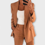 Objevte náš vynikající dámský oblek, který vaše frustrace s běžným oblečením promění v prach. Vyroben z prvotřídních materiálů, nabízí jak v saku, tak v kalhotách prvotřídní a pohodlný zážitek.