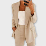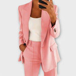 • Nadčasová elegance: Přidejte do svého šatníku špetku stylu s nadčasovou elegancí našeho dámského dvoudílného obleku.