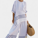 Kombinéza Daisy nabízí dokonalou rovnováhu mezi pohodlím a středomořským stylem. Je vyrobena z lehké směsi bavlny a lnu a její volný střih s nenápadnými průstřihy a dekorativními pruhy vyzařuje nenucenou svěžest.