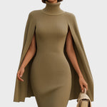 Tento pletený šat je ztělesněním sofistikovaného stylu. Přiléhavý střih zvýrazní ženskou siluetu, zatímco vysoký rolák a efektní plášťový detail dodávají celkovému vzhledu noblesu a originalitu. Ideální volba pro večerní události i speciální příležitosti, kde chcete působit sebevědomě a výjimečně.